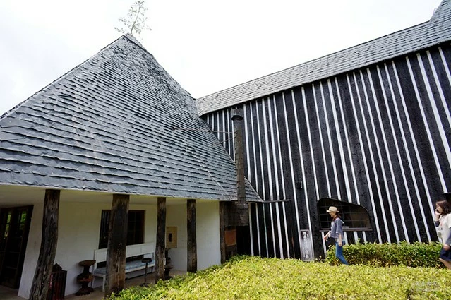 牆面黑色的是部份是用木條燒過炭化過的