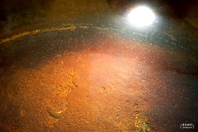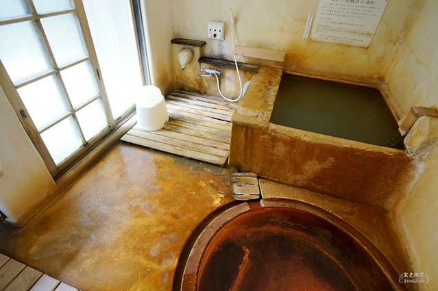 嘿嘿,這可不是髒啊,這是因為溫泉的硫磺造成的,小小的湯屋,內部有冷池及原本的熱池,特別細心的是,熱池區裏還有燈光可以將泡泡看的更清楚,這個規畫原本是不需要的,但特別加了這個燈,讓整體更加分