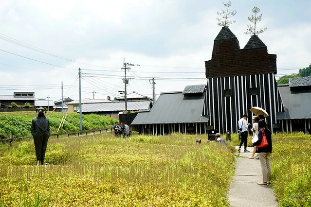 這棟建築是日本著名的建築師 藤森 照信 ( ふじもり てるのぶ) 主持設計的,全棟是黑白相間的建築,建築物採斜屋頂的設計,屋頂的地方還刻意長出樹來,有點童話故事裏的夢幻小屋一樣