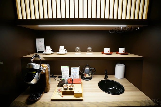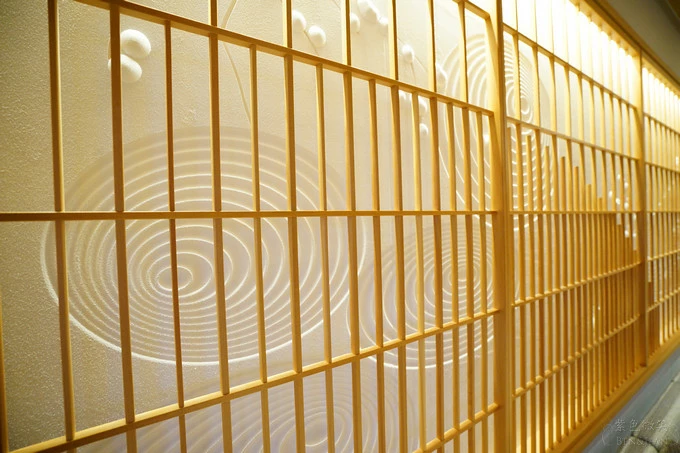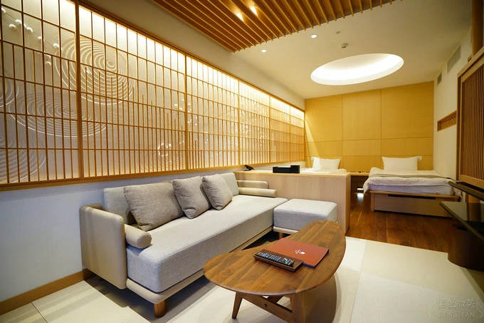 房間是新館鶯宿,牆上還有類似枯山水的庭園造型設計,質感好棒!!而且這裏的燈光非常柔和,也可以調整明暗度,