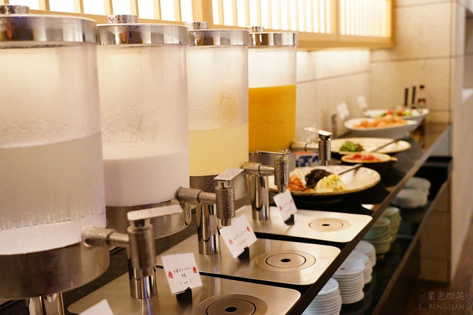 早餐的內容和日式傳統早餐差不多,但擺盤更顯精緻,而且還有一杯綠色看起來元氣滿滿的精力湯
