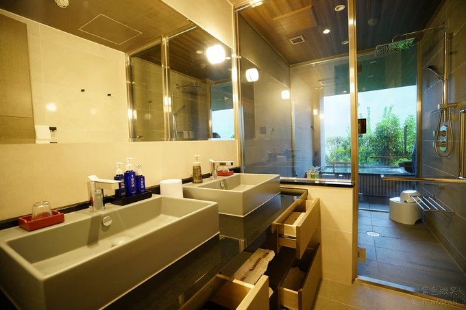 浴室有雙人的洗手台,備品都在下面的抽屜裡