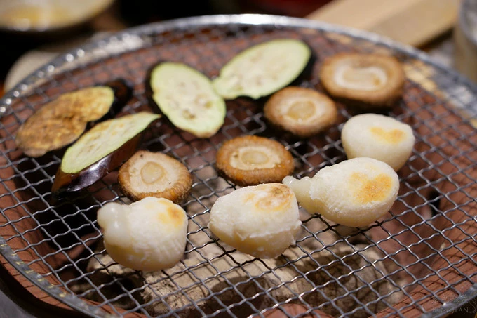 以為只有這樣而已,沒想到服務人員竟端來一大炭火盆 ,原來是用來烤香菇的!! 這個方法很特別,鮮香菇將水份烤乾了一些,味道更濃郁!