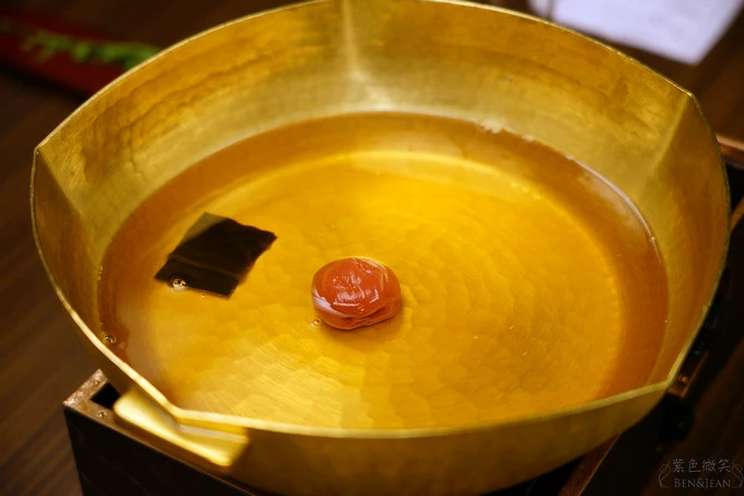 火鍋的湯底裏也有一顆梅子哦,湯頭非常有味道