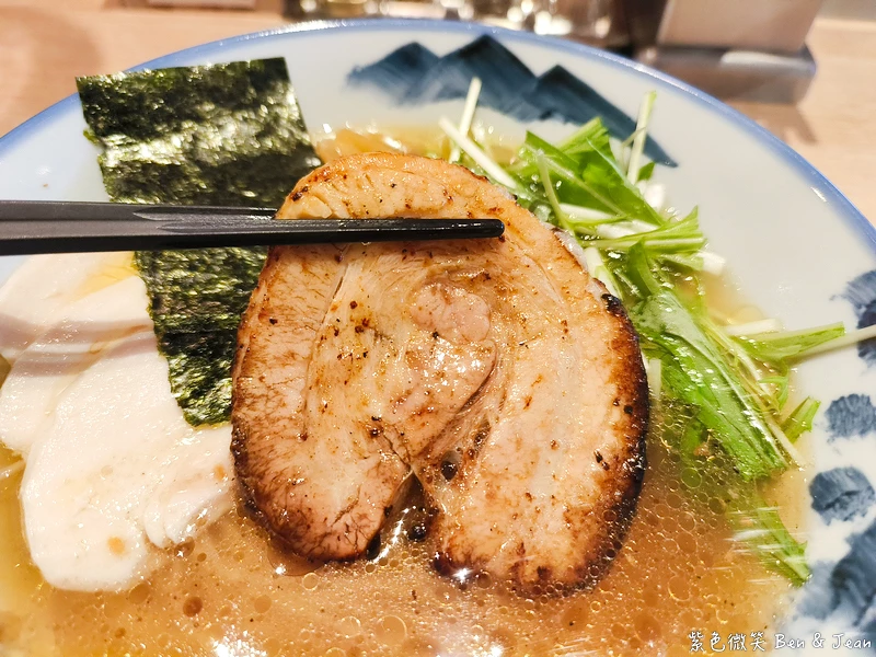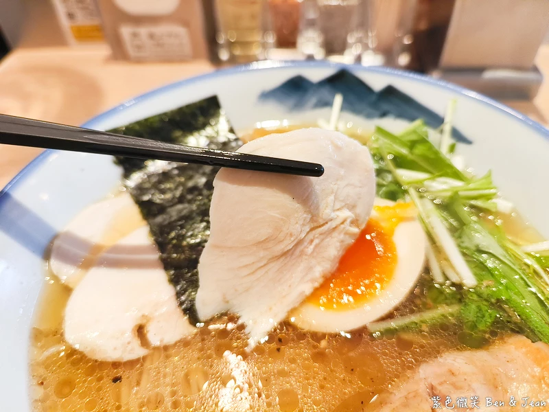 點了一碗招牌柚子鹽+叉燒雞肉雙組合的拉麵,麵條就選招牌的極細麵