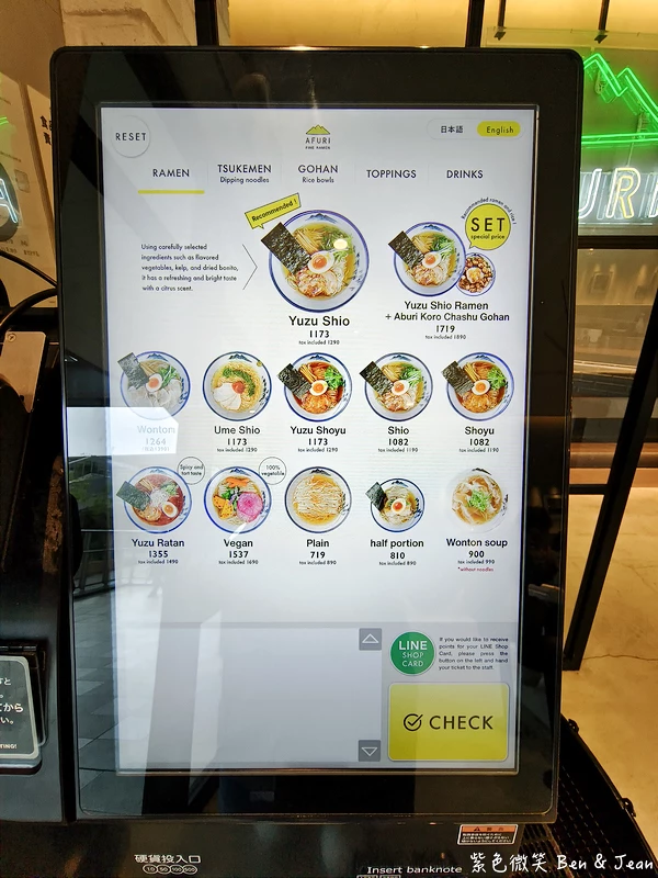 AFURI 在日本的分店大多採取食券機點餐模式,部分分店是完全無現金支付(僅接受信用卡或電子支付)。