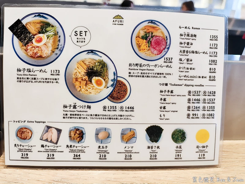 「AFURI阿夫利拉麵」湯頭有「淡麗」(清淡、雞油適中)和「まろ味」(濃醇、雞油較多)可以選擇