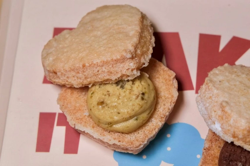 ▼達克瓦茲共有原味/巧克力/草莓/開心果口味,內餡選用比利時草莓、義大利開心果、歐洲巧克力、澳洲cream cheese等原料,最喜歡開心果口味非常濃郁 。