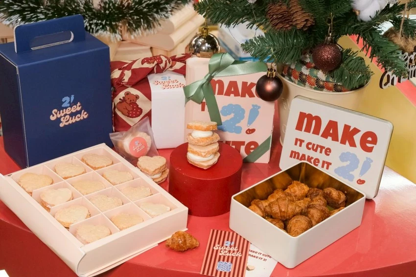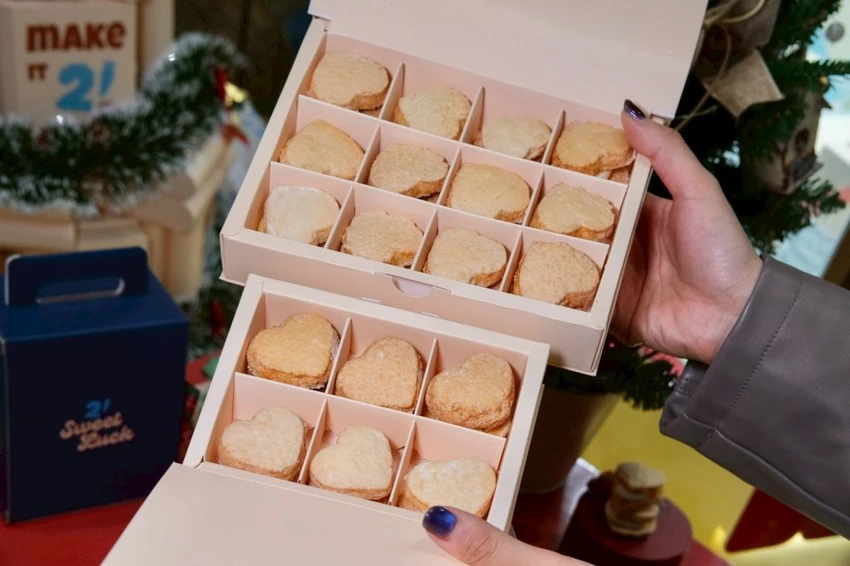 ▼【SweetLuck 】搭配聖誕節更推出限定款包裝,買迷你可頌 or達克瓦茲的2入組都能免費升級成聖誕包裝。