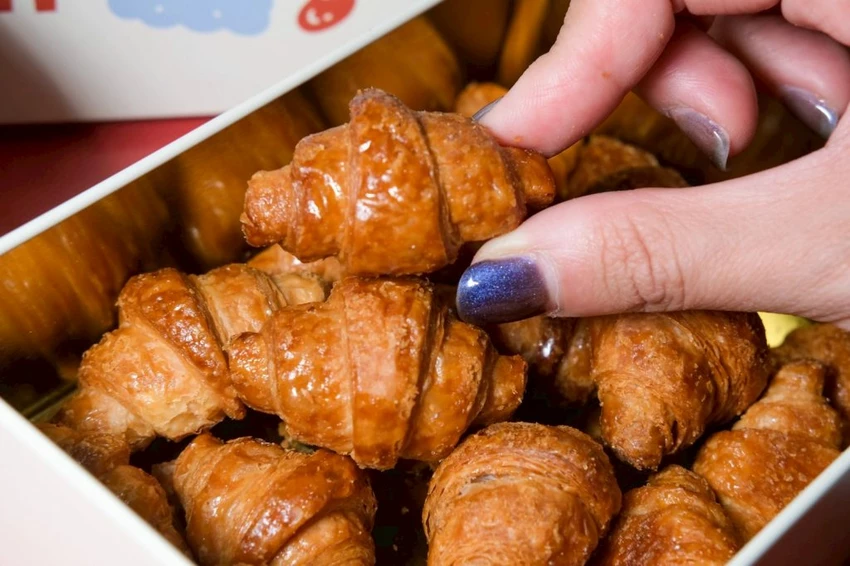 ▼完全是嘴饞救星的迷你可頌,手工折層+慢火烘焙,咬起來超級酥脆,外層甜甜的口感很討喜,會讓人一口口停不下來!