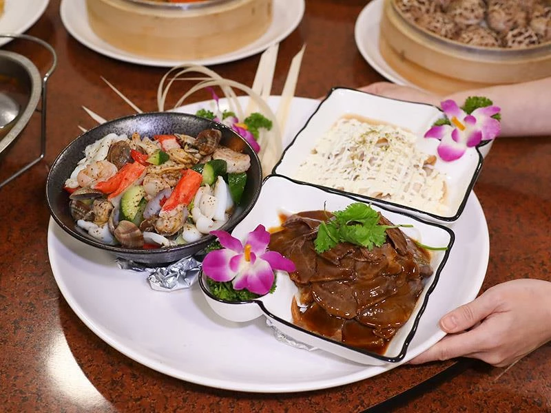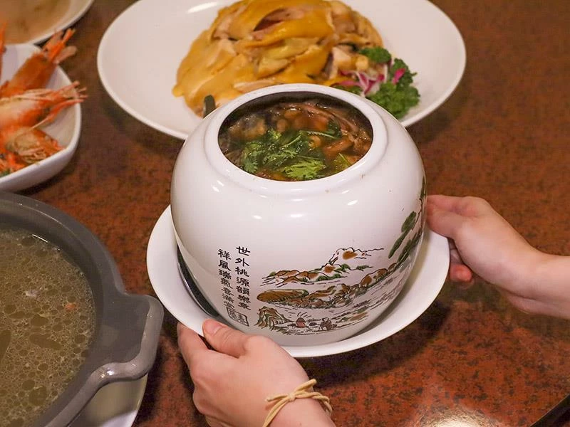 旭蟹米糕的糯米吸飽蟹香,味道濃而不膩。佛跳牆選用鮑魚、排骨、豬肚、鳥蛋等傳統鍋料,湯頭膠質感強、濃順厚實,份量飽滿,是年夜飯桌上不可少的主菜。