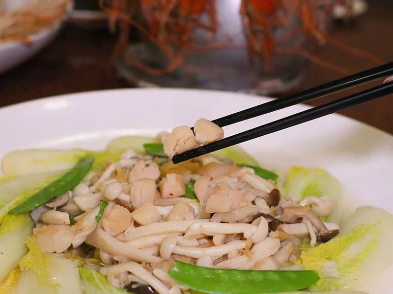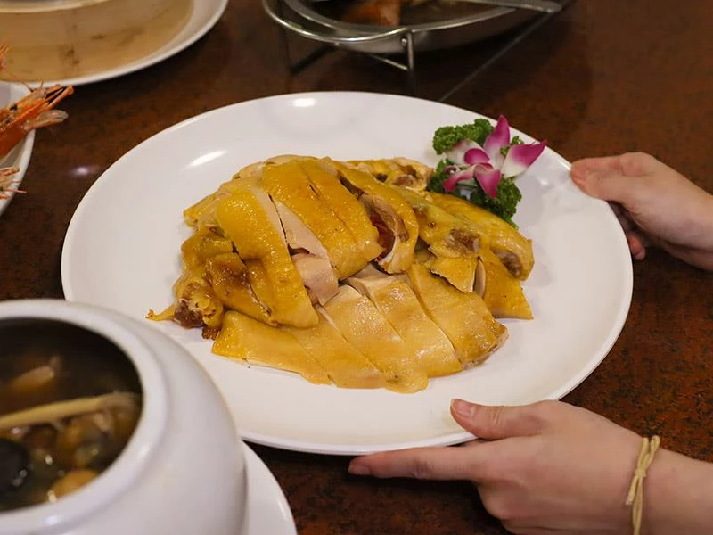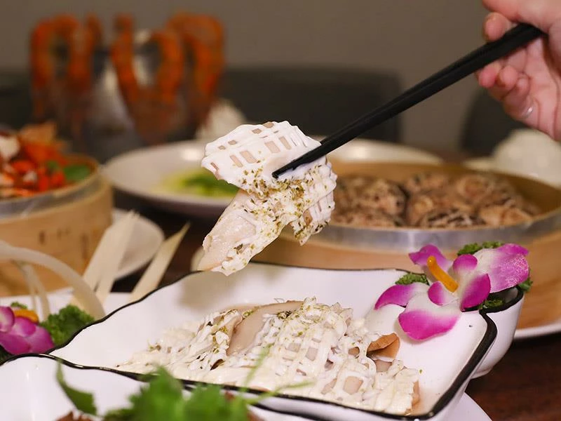 野放玉米雞肉質緊實不柴,金黃色外皮帶來濃厚年味。處理手法穩定,皮薄肉嫩,鹹香耐吃,是合菜中長輩普遍喜歡的主食類料理。