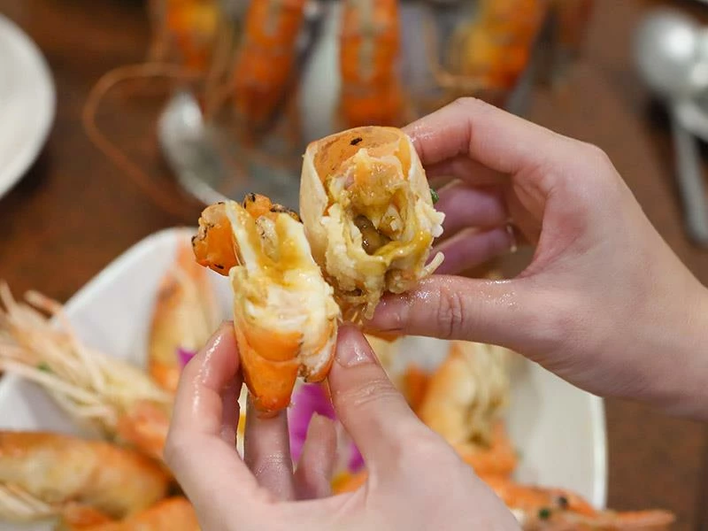 內用可從八款蝦料理中選兩道,每道皆為一斤份量。胡椒蝦香氣濃厚,檸檬蝦酸度明亮,蝦子已開背去腸泥,乾淨好剝。外帶版本因避免影響風味不提供檸檬蝦。