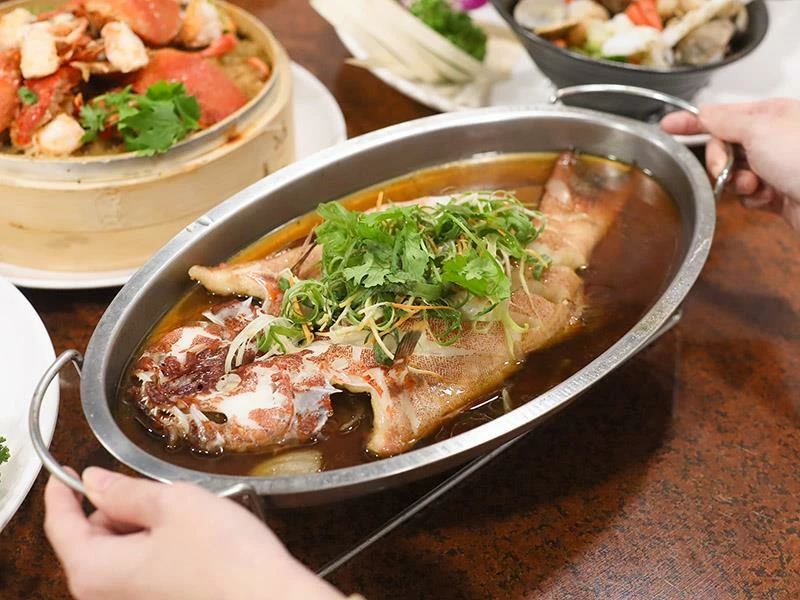 七星斑、干貝時蔬與藥膳烏骨盅 從海味到補氣的完整收束