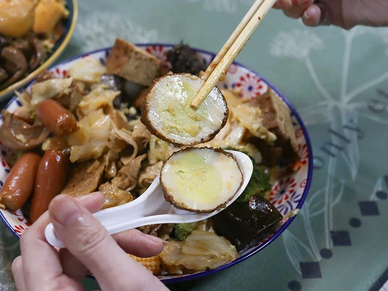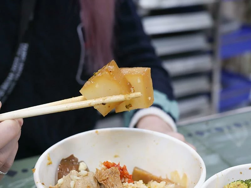 菜頭滷得完全透心,入口時仍保留自然甜味;炸蛋外層的微酥老皮增添口感,與醬香蛋體形成漂亮對比;滷蛋白因為低脂高蛋白,成為健身族的常點品項。三款組合起來口感截然不同,也讓整份滷味的層次更立體。