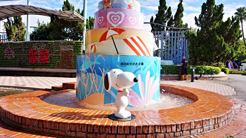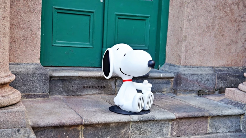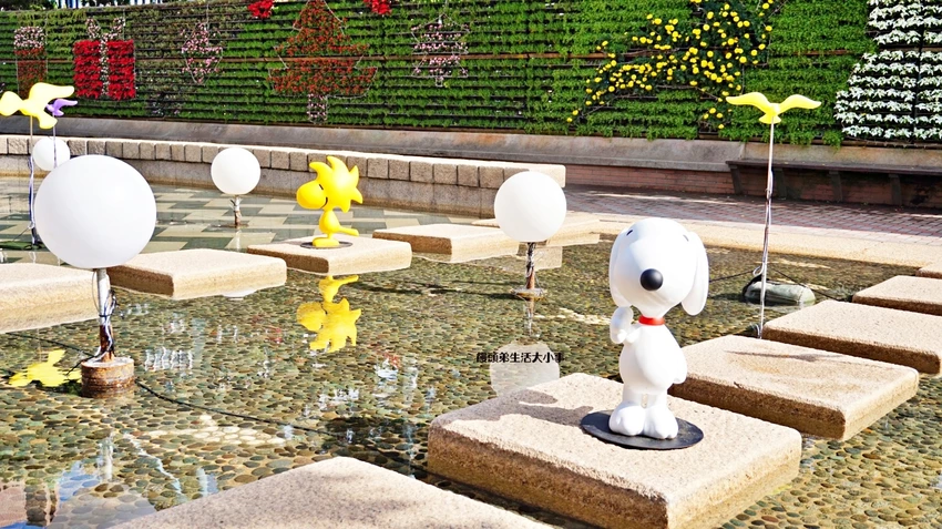 水池邊、步道旁都找得到史努比 散步途中充滿驚喜