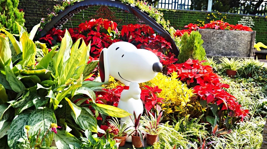 聖誕紅打造的拱門很好拍,糊塗塌客出現的瞬間更讓粉絲失守。蛋糕史努比造景浮誇又可愛,完全是限定季節才看得到的亮點,大小朋友都拍到停不下來。