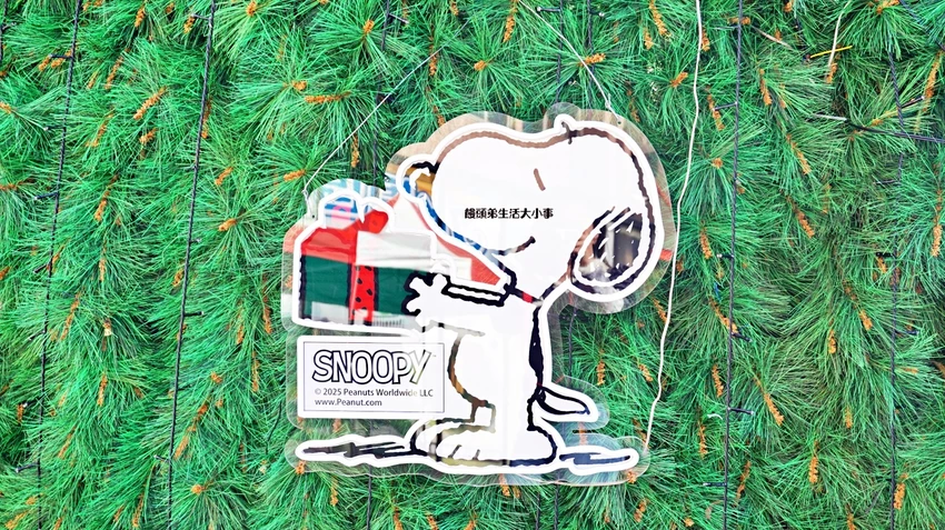 沿著水池走就能看到不同造型的史努比,有的慵懶、有的俏皮,散落在水岸邊的模樣超級療癒。步道兩側時不時冒出角色造景,邊走邊拍充滿樂趣,是非常好逛的聖誕園區動線。