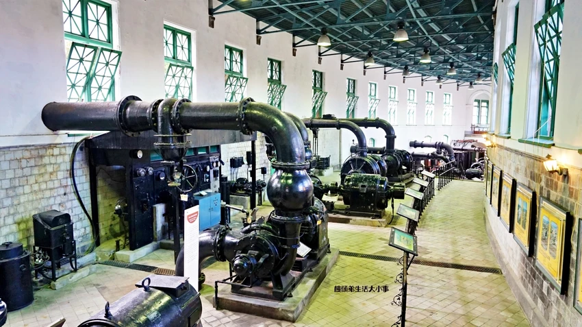 除了聖誕造景,水源地的美麗花窗與抽水機展示仍然開放參觀。唧筒室保留完整機械設備,921震災時折彎的水管也成為教育展示之一,帶有歷史重量感,與可愛造景形成有趣對比。