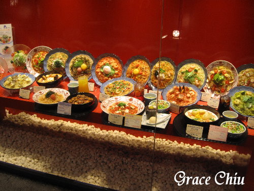 經過日式庭園進餐廳前可以看到櫥窗擺了多款口味的義大利麵等餐點模型