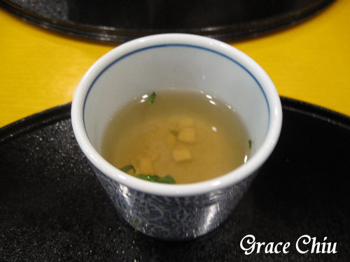 當天跟朋友都不太餓,所以決定先試試義大麵就好,分別點了明太子鮮蝦和風洋麵及辣味蛋黃培根洋麵,附的湯像茶杯大小,湯份量約半滿,裡頭有些細碎的豆腐小丁,味道淡淡的.
