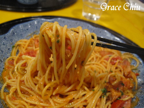 洋麵屋還有一個特色就是~用筷子吃義大利麵!平常用筷子吃麵很得心應手,但義大利麵裝盛在平盤中用筷子夾就有點“休誇ㄎㄟ/ㄎㄟ/”,哈~