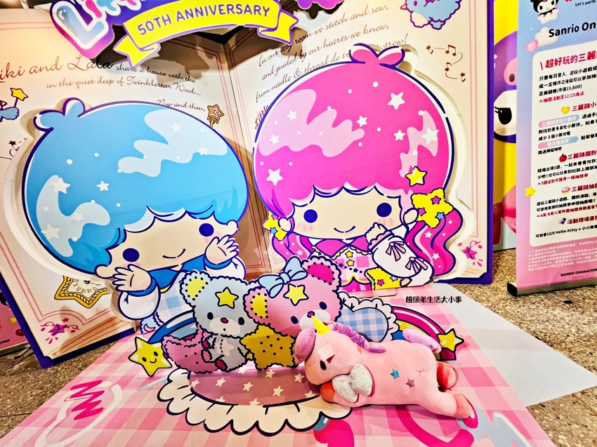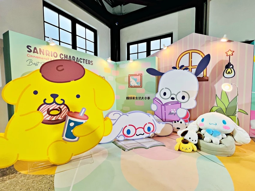 走進展區彷彿掉入夢幻樂園,凱蒂貓、美樂蒂、酷洛米、布丁狗與雙子星全部以巨型公仔亮相,可愛到讓附近直接充滿尖叫音量。每個場景都很用心,從牆面到展示台都超好拍。