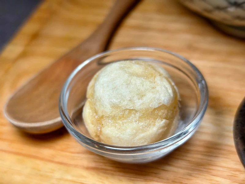 附餐包含醃蘿蔔、小菜以及味道略重的湯品。其中特別的是炸麻糬,咬開會爆漿,甜度不高、口感外酥內軟,出乎意料地成為最具記憶點的小品之一,與主食搭配也算有小驚喜。
