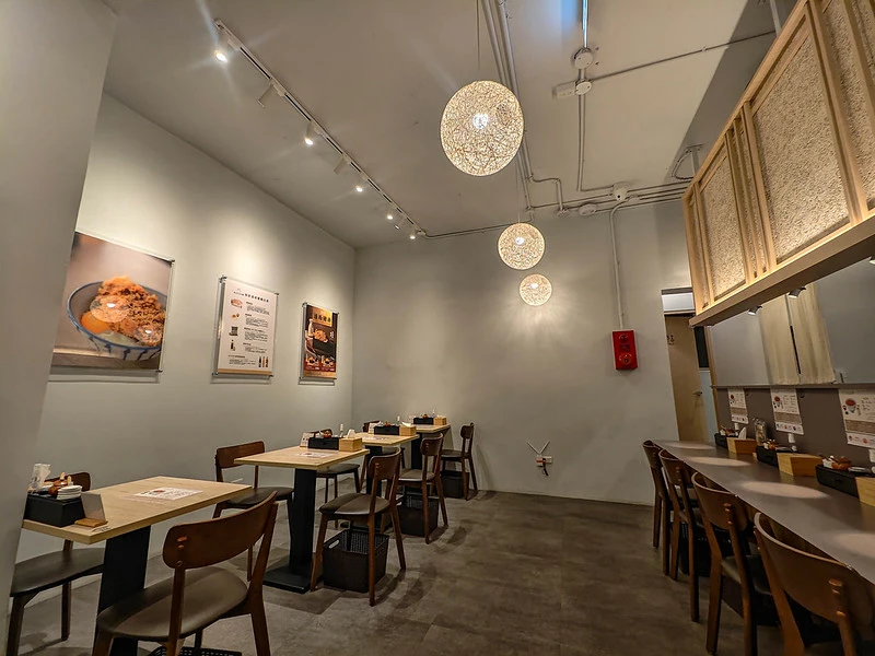 店面位於板新路上,距離捷運板橋站步行約五到十分鐘。以木質調與開放式廚房營造日式小店氛圍,吧台與雙人桌為主,尖峰時段稍顯緊湊。雖然空間不大,但排煙運作順暢,坐在店內也不會沾染油煙味。