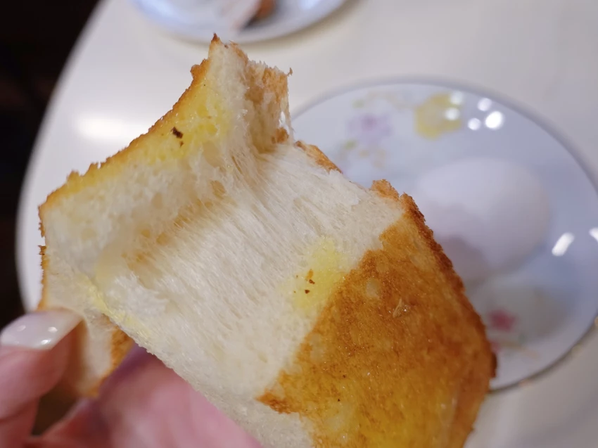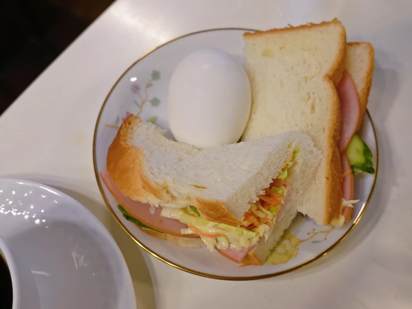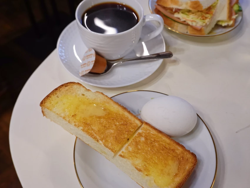 其實味道和口感大致如想像般樸實:吐司外酥內軟,奶油融化後的香氣十分迷人;水煮蛋與咖啡則和日常所熟悉的風味相差不大。