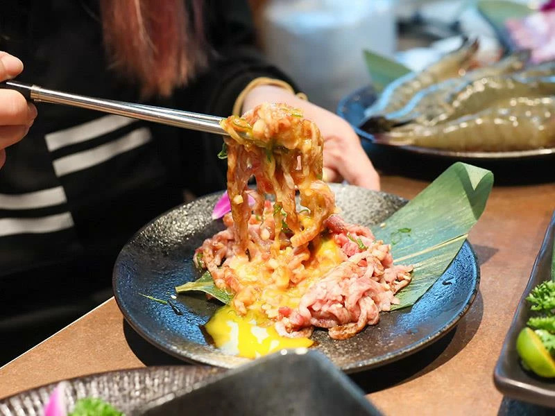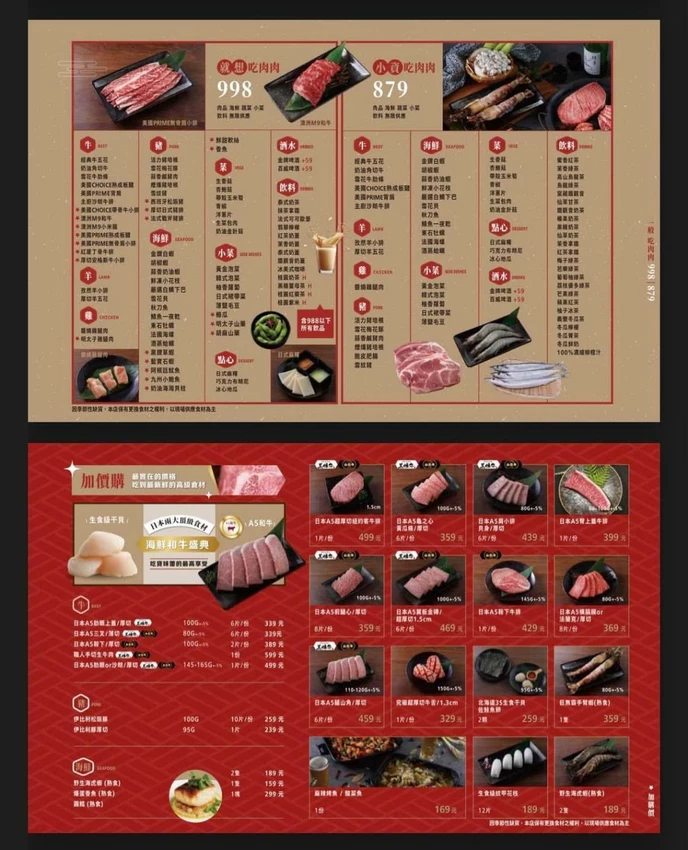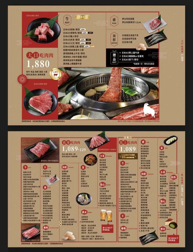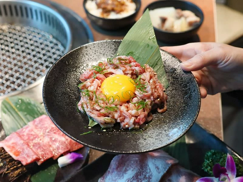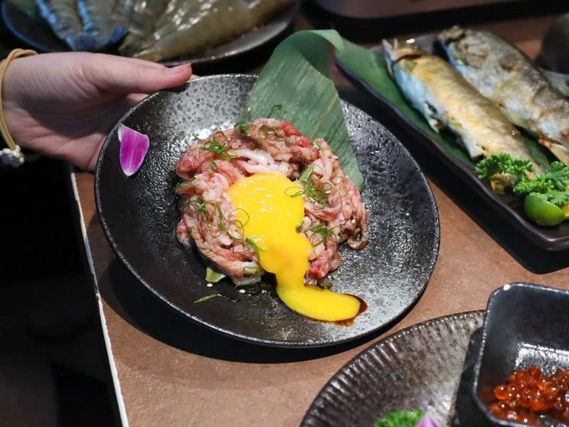 店內提供從879元至2980元多種價位選擇,滿足不同預算的肉控。特別值得一提的是,2280元與2980元等級的顧客只要預約,就能額外獲贈限定款肉品,以本次體驗的2980元為例,即可獲贈厚達1公分的「日本A5和牛月見金磚」與口感細緻的「手切生牛肉」,為這趟日本A5和牛 中壢之旅帶來驚喜開場。