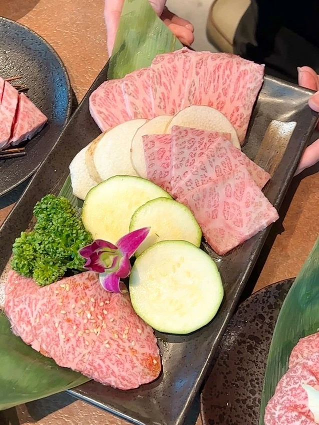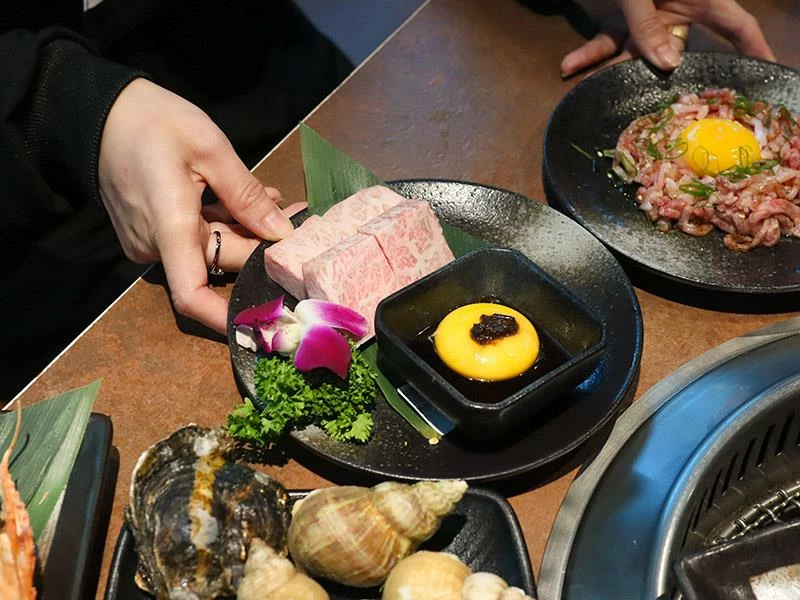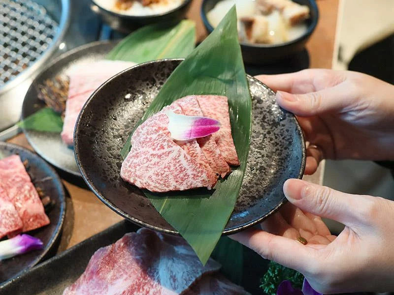 頂級方案提供了多種少見的A5和牛部位,例如超巨厚的紐約客與沙朗肋眼,以及柔嫩的鞍下牛排。此外,牛舌愛好者絕對不可錯過「厚切牛舌」系列,店家提供1.3公分厚的究極超厚切牛舌,搭配特製蔥鹽,口感Q彈扎實,極具衝擊性。即使是店家定義的「薄切」,其厚度也遠勝一般燒肉店的標準,誠意十足。