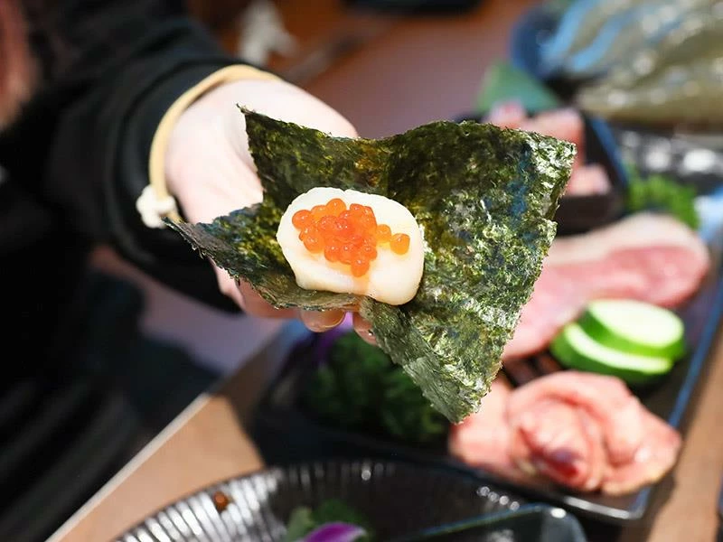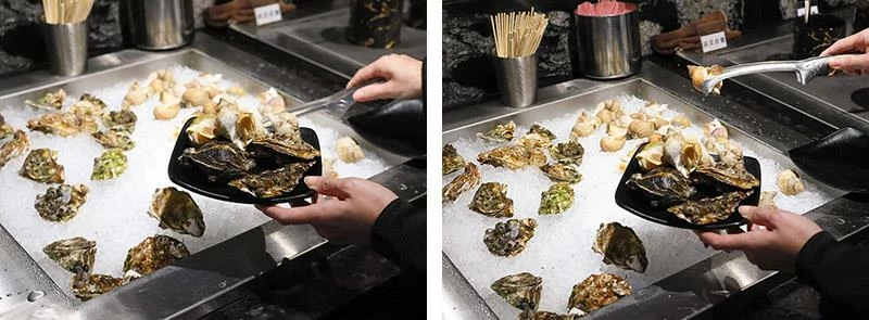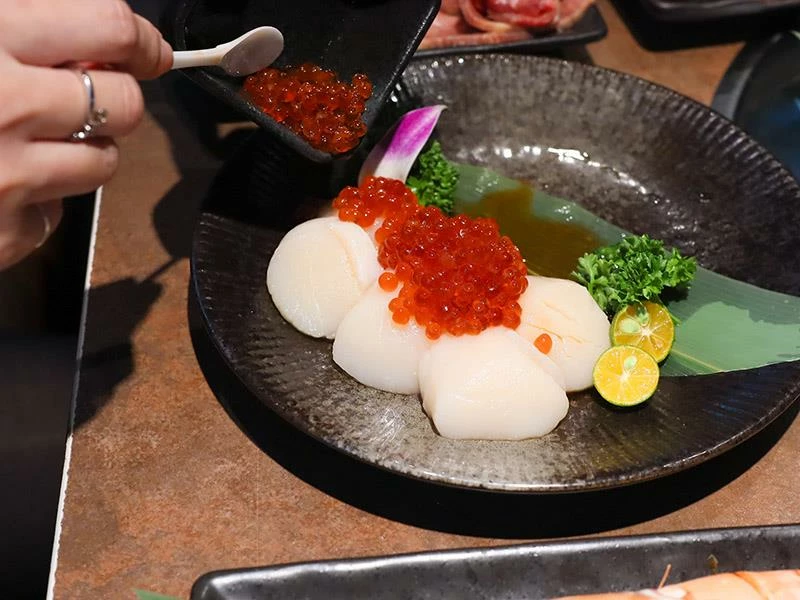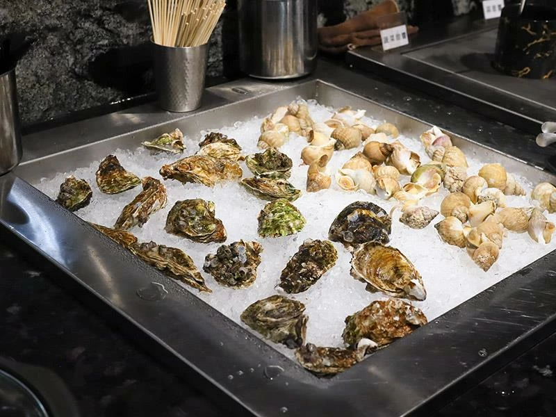 海鮮自助區更是讓人眼睛一亮,提供招牌的澎湖牡蠣和法國海螺,讓喜歡海味的顧客可以無限享用。高價位套餐中更包含手臂蝦、生食級干貝佐鮭魚卵、黑鑽大草蝦等頂級海鮮,無論是燒烤或搭配海苔食用,都能品嚐到海洋的鮮甜滋味。