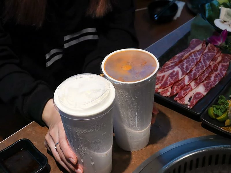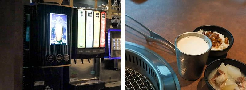 除了肉品和海鮮,「吃肉肉燒肉專門店」在自助吧的配置上同樣大方。飲料區除了常見的咖啡、碳酸飲品外,更提供少見的氮氣茶飲,紅茶與蜜茶冰涼暢快,非常解膩。
