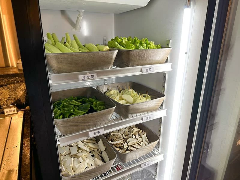 在眾多肉品之外,餐廳的熟食與單點項目也展現出高水準。「麻辣魚」是許多內行人的私心推薦,香辣的湯頭可以飲用,搭配細緻的烏鱧魚肉和多種鍋料,一鍋僅需168元,堪稱是意外的驚喜美食。