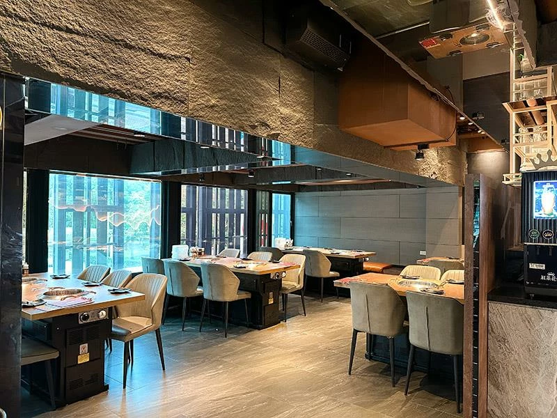 吃肉肉燒肉專門店中壢店的地理位置極佳,就在中壢圖書館對面,整體建築宏大氣派,讓顧客享有寬敞舒適的用餐體驗,停車交通方面也十分便利,附近即有中正公園停車場,步行僅需數分鐘即可到達。店內裝潢採用日式木質結合現代工業風,挑高的空間搭配昏黃的燈光,營造出優雅且充滿情調的用餐氛圍,二樓與三樓的用餐區主要以4人至8人的座位為主,適合家庭聚餐或朋友慶祝。