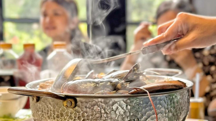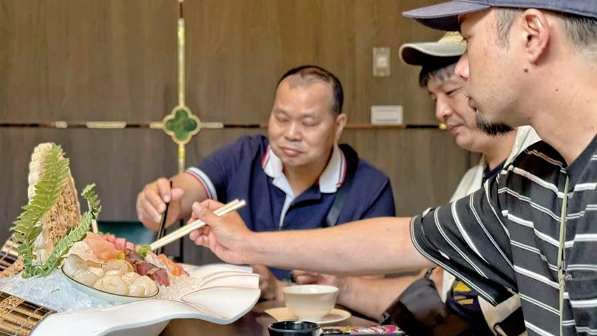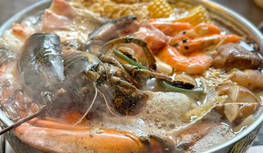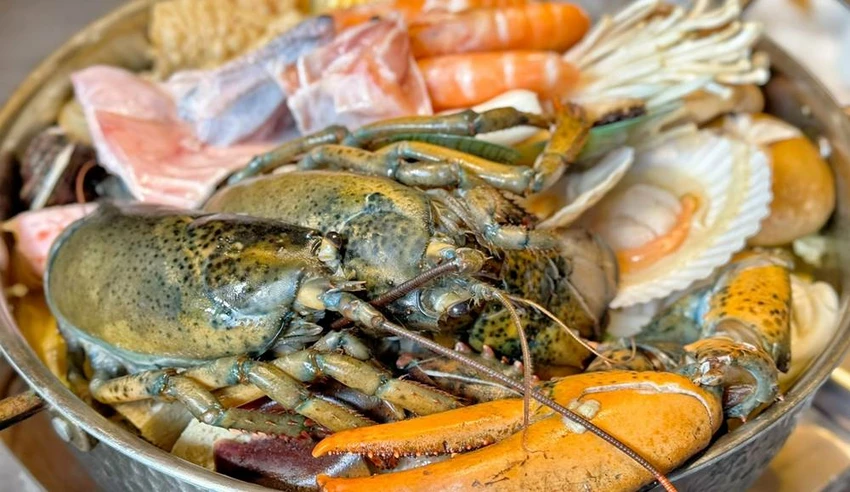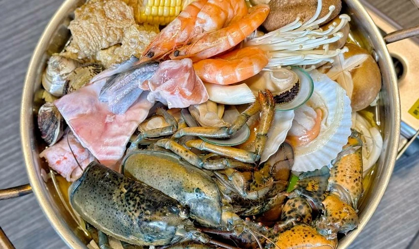特上干貝刺身一端上桌立刻成為焦點,鮭魚、鮪魚、旗魚、鯛魚、海鱺、鯖魚切片厚實,搭配整盤干貝更顯豐盛。龍蝦海鮮火鍋的內容物也滿到看不見底,波士頓龍蝦、魚片與蔬菜配料堆得像小山,湯頭清甜,還能請服務人員加湯,是合菜裡最受長輩與小孩喜愛的一道。