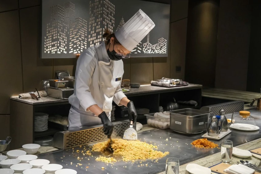 ▼【夏慕尼新香榭鐵板燒】的每個座位都在鐵板面前,可以看到師傅精湛的料理手藝,同時滿足視覺味覺的多重享受!
