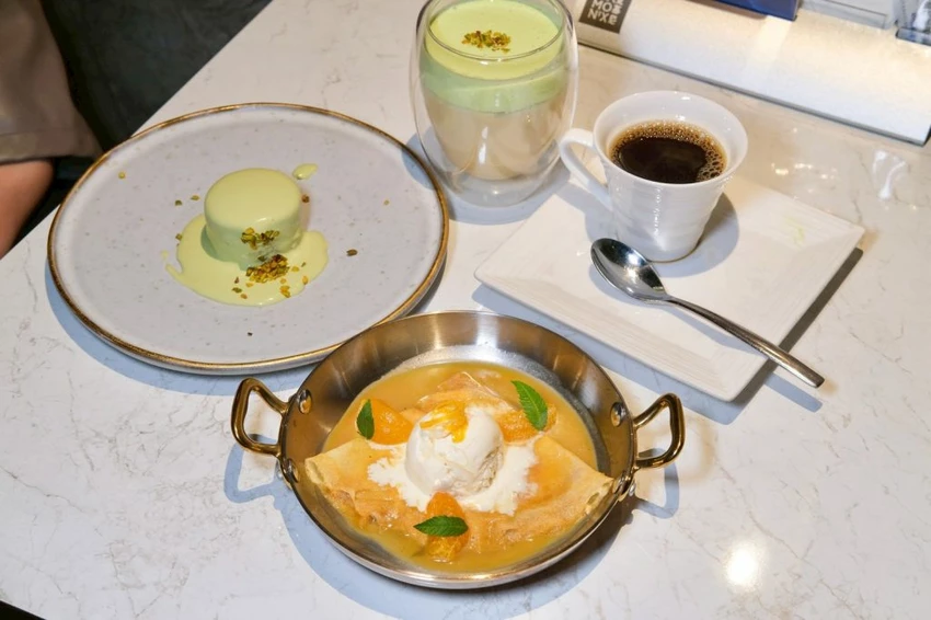甜點|法式香橙可麗餅 開心果雪崩蛋糕