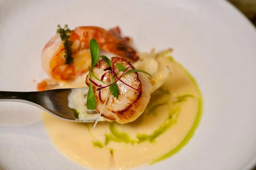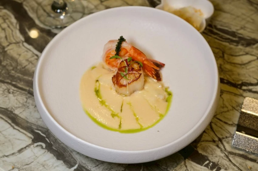 ▼海鮮部分提供北海道干貝&海大蝦,搭配主廚特製黃檸檬奶油醬,超級愛這個醬,奶香滑順又細膩,完美出海鮮的鮮甜風味,非常的有記憶點!!