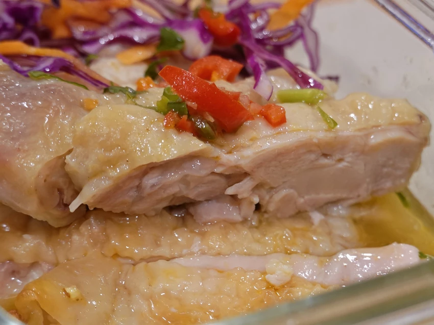 這雞腿肉厚度也是值得嘉許,而且肉質多汁軟嫩,搭配酸甜微辣的椒麻醬汁,是無論男女老少都會喜歡的一道菜色。