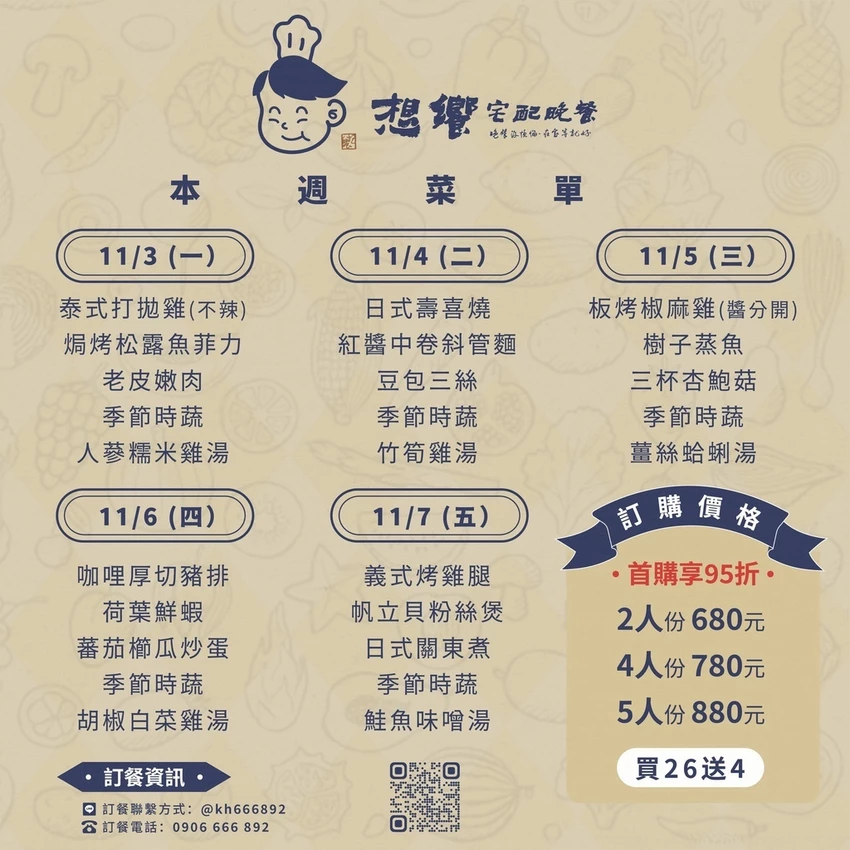 「想饗宅配晚餐」現在首購享95折優惠,再搭配26送4活動,以四人份來算,平均每餐每人花費不到兩百元,價格實惠又兼具健康與便利,是忙碌現代人的理想晚餐選擇。