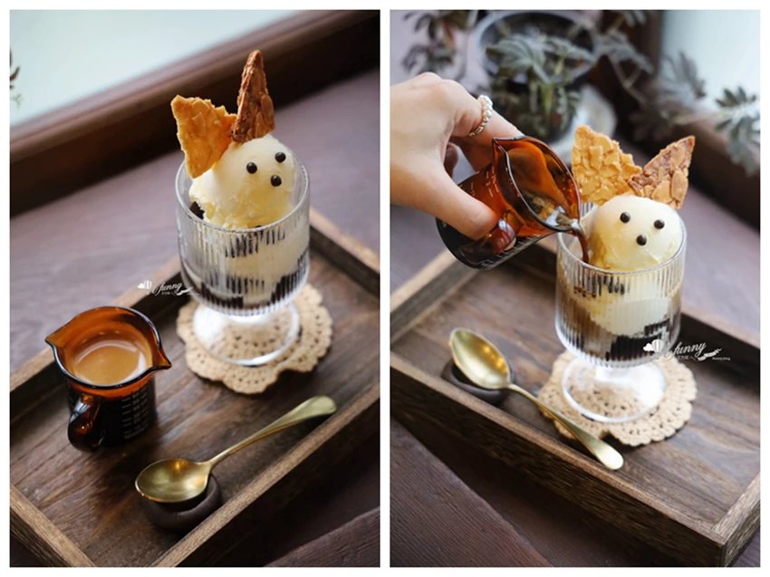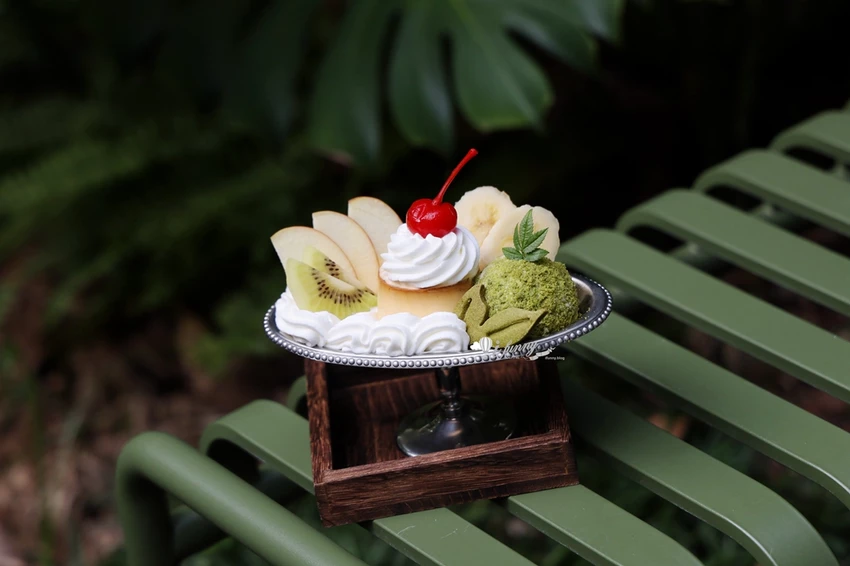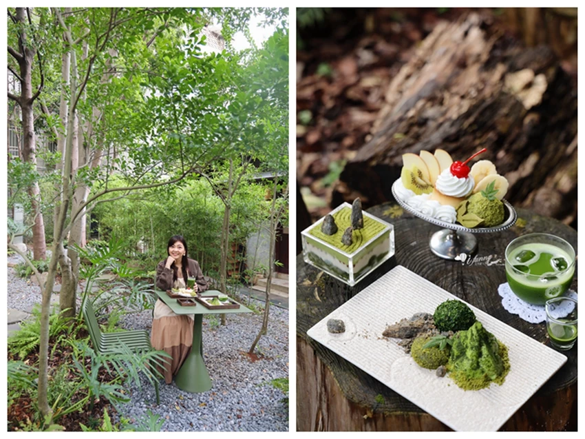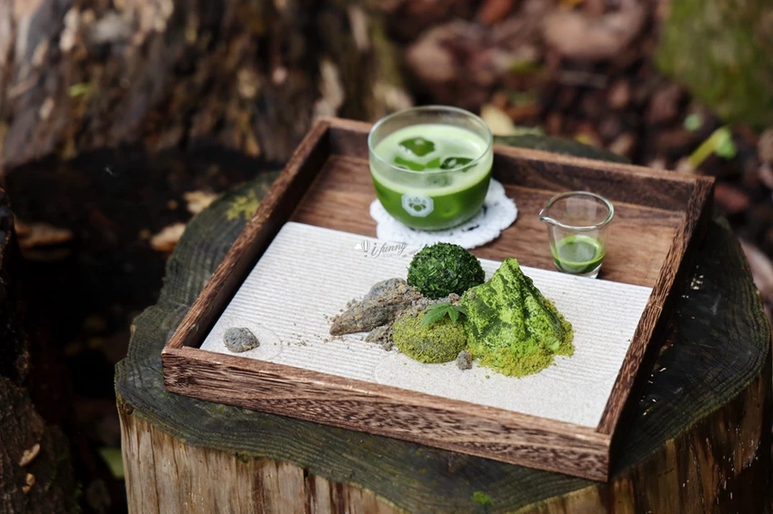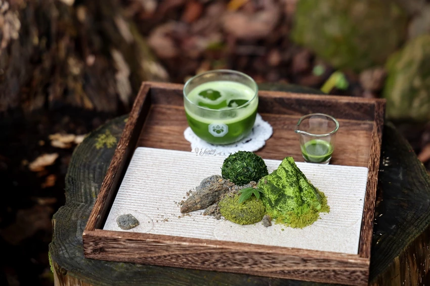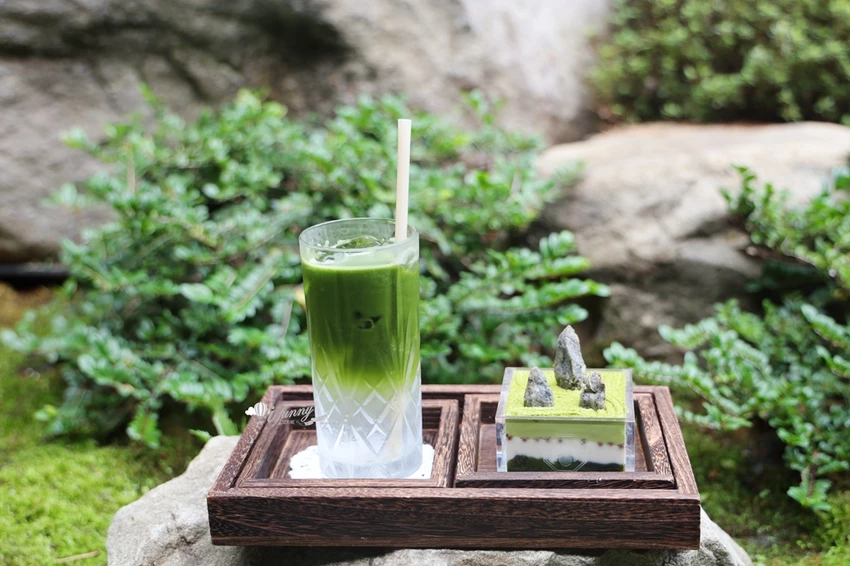 另一款「枯山水抹茶提拉米蘇」售價280元,以三座石配置與波浪紋路,呈現庭園風光。此外,店內也提供充滿昭和復古風格的「森林水果布丁聖代」售價380元,以及多款特色飲品如「柚子氣泡咖啡」售價250元與「招牌抹茶蘇打」售價200元,讓顧客在綠意中享受優雅的午茶時光。