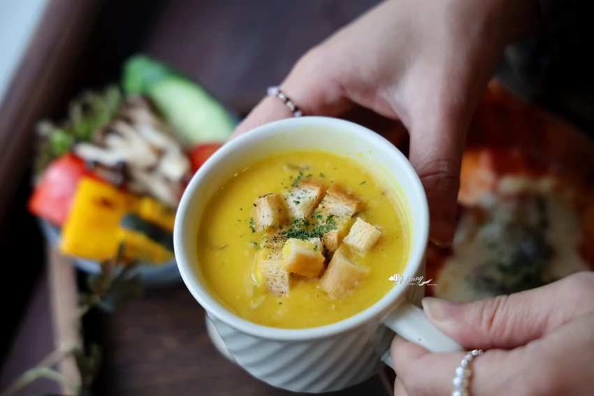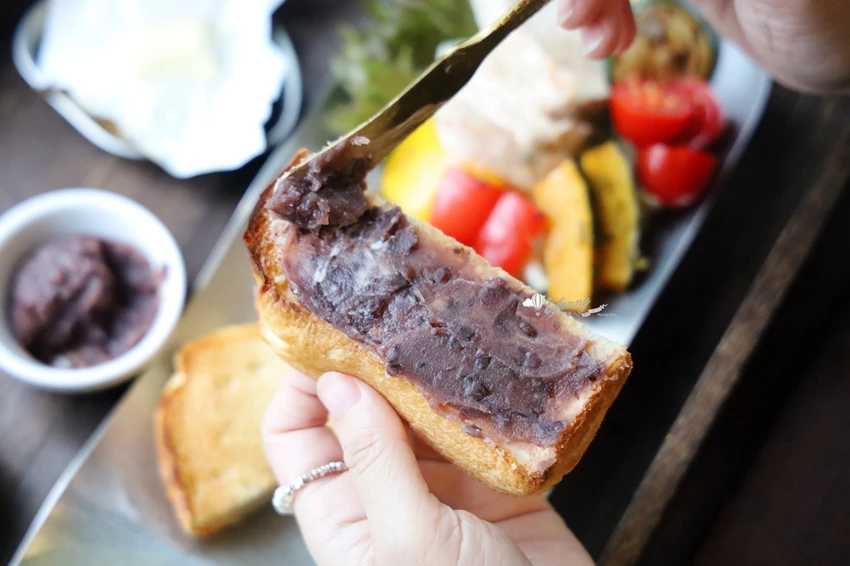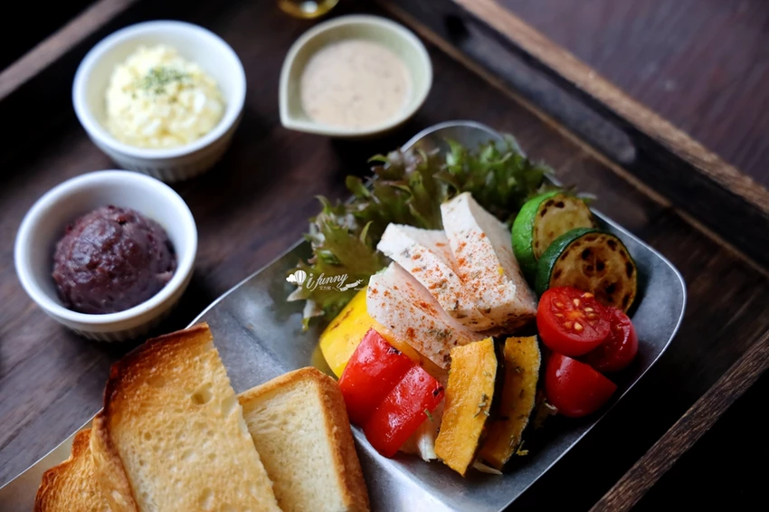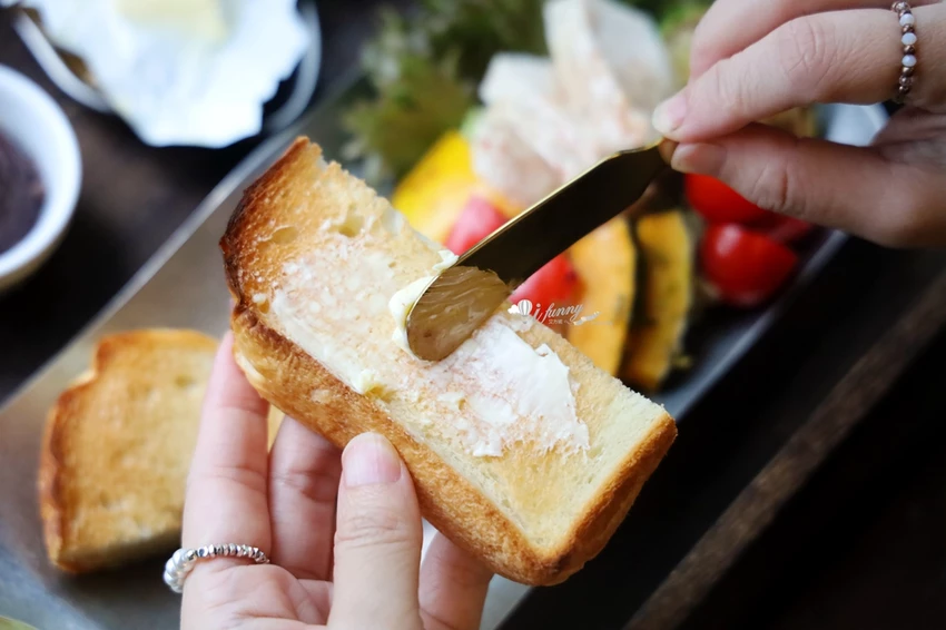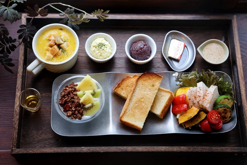 箱庭 山本屋提供的日式洋食 台北餐點充滿了創意與質感。其中「箱庭式吐司定食」價格為380元,包含南瓜雞肉濃湯、日本師傅製作的生吐司、抹醬、時蔬沙拉與水果優格,香酥的生吐司抹上奶油與紅豆餡,奶油的鹹香與紅豆的甜味融合得恰到好處,風味高級。