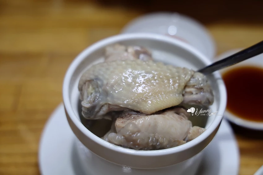 清燉雞盅湯頭溫潤順口,雞肉軟嫩入口即化