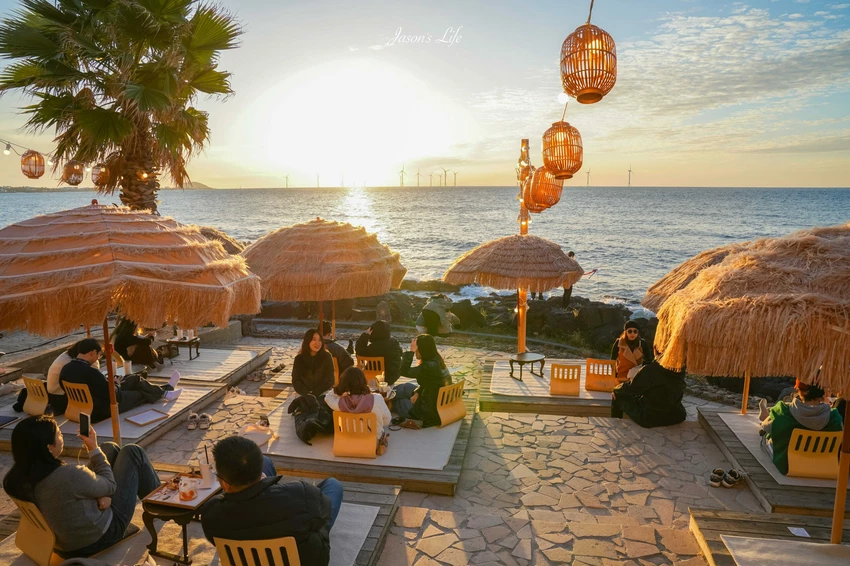 Hello Kitty 迷必訪島上限定的海女與石頭爺爺造型玩偶。秋季特產當然少不了橘子,Gamtanam 咖啡廳的橘子甜點與佈景充滿儀式感。午餐推薦「三姓穴海鮮湯」,滿滿的活章魚、鮑魚與螃蟹入鍋,鮮味十足。午後則到 Saebil Cafe 欣賞壯觀的粉黛亂子草與蘆葦花海。