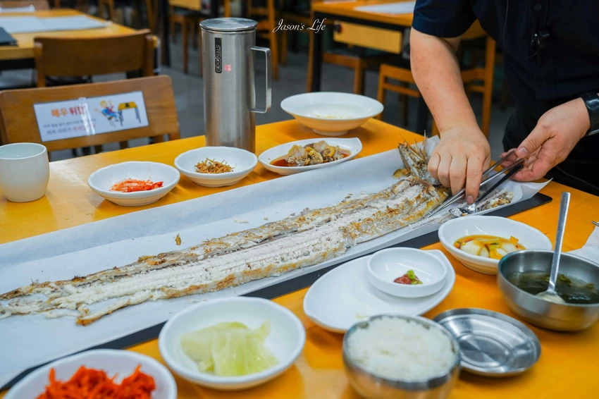 晚餐來到「Chunshim」,這裡有專業服務人員桌邊去刺,讓大口吃肥美白帶魚成為享受。晚間入住規模龐大的「濟州神話世界藍鼎飯店」,飯店內就有商場與樂園,設施豐富不用怕無聊,是預算友善的住宿選擇。