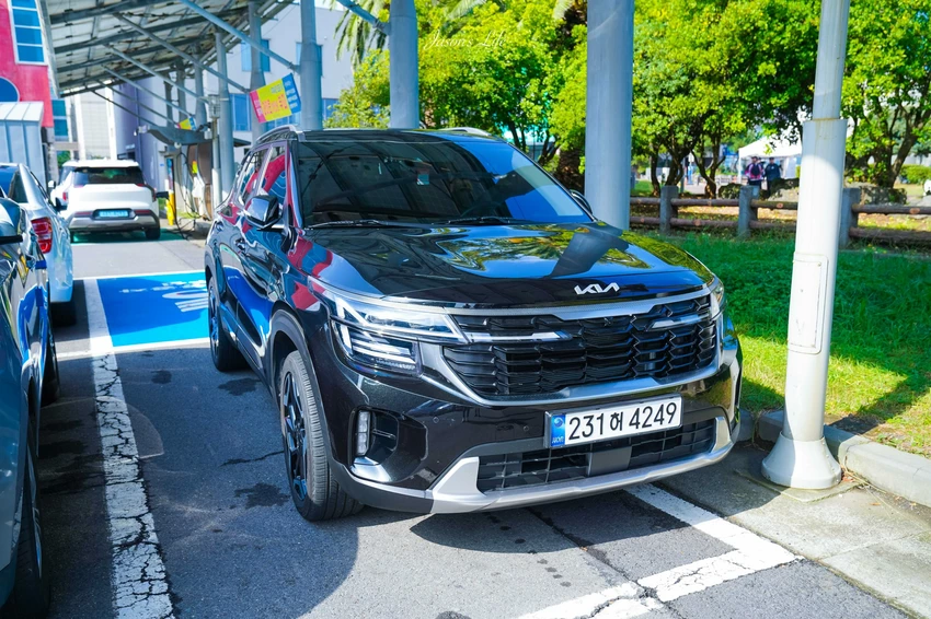 抵達後前往樂天租車取車,KIA Seltos 安全配備齊全。首站直奔「黑豬肉一條街」的豚香氣餐廳,享用黑豬肉、鮑魚與花枝套餐。晚上逛完七星街購物區後,入住鄰近機場且高 CP 值的「天狼星飯店」,晚餐則推薦金寧海岸邊的 Gimnyeong Orai,品嚐新鮮生魚片與烤魚。