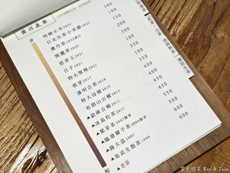 既然是專業的茶屋,裏面準備的茶種也非常多樣,紅茶、白茶、普洱、烏龍~~~這樣加起來幾乎有近百種茶葉可以選