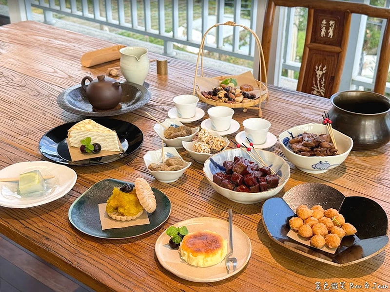 茶點 ( 千層蛋糕、豆干、茶香鮮脆菇、日式焦糖小泡芙)